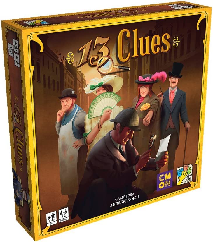 The city of London has been shaken by heinous crimes, and Scotland Yard is groping in the dark. 13 Clues, set at the end of the 19th century, puts players in the shoes of the detectives, each trying to solve their own mystery. Each player sees the clues — person + location + weapon — for the other players but not their own. They investigate by asking questions, by consulting the secret informant, and by making accusations in order to collect clues and rule out suspects. The goal of the game is to identify which of the 13 clues match their case before the others do!