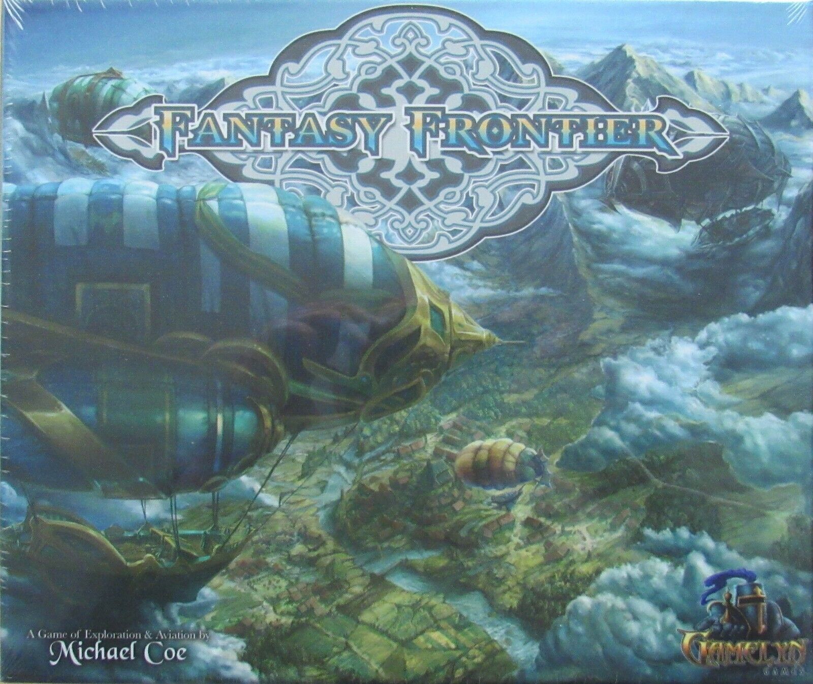 Fantasy Frontier is a fantasy board game of airships and exploration for 2 to 4 players with a playing time of 45 to 90 minutes. Each player controls a unique airship with a crew of pioneers. Players manage the actions of these pioneers each turn in an effort to scout the land, gather resources, construct townships, and even battle it out in aerial combat. Creating geographic patterns via tile placement, the players will develop a new world each time they play. Players compete to be the first to score the required number of victory points to win the game. Points are scored by building townships, completing geographic patterns, and fighting their rivals in airship battles!