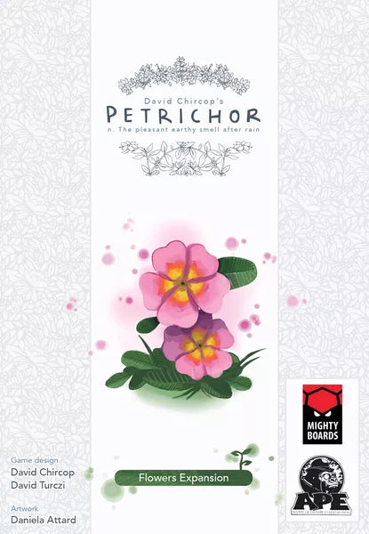 "Petrichor: Flowers is an expansion that emerged naturally during playtest and development that includes three new field types, the titular flowers, and enough components to play the game with five players."
