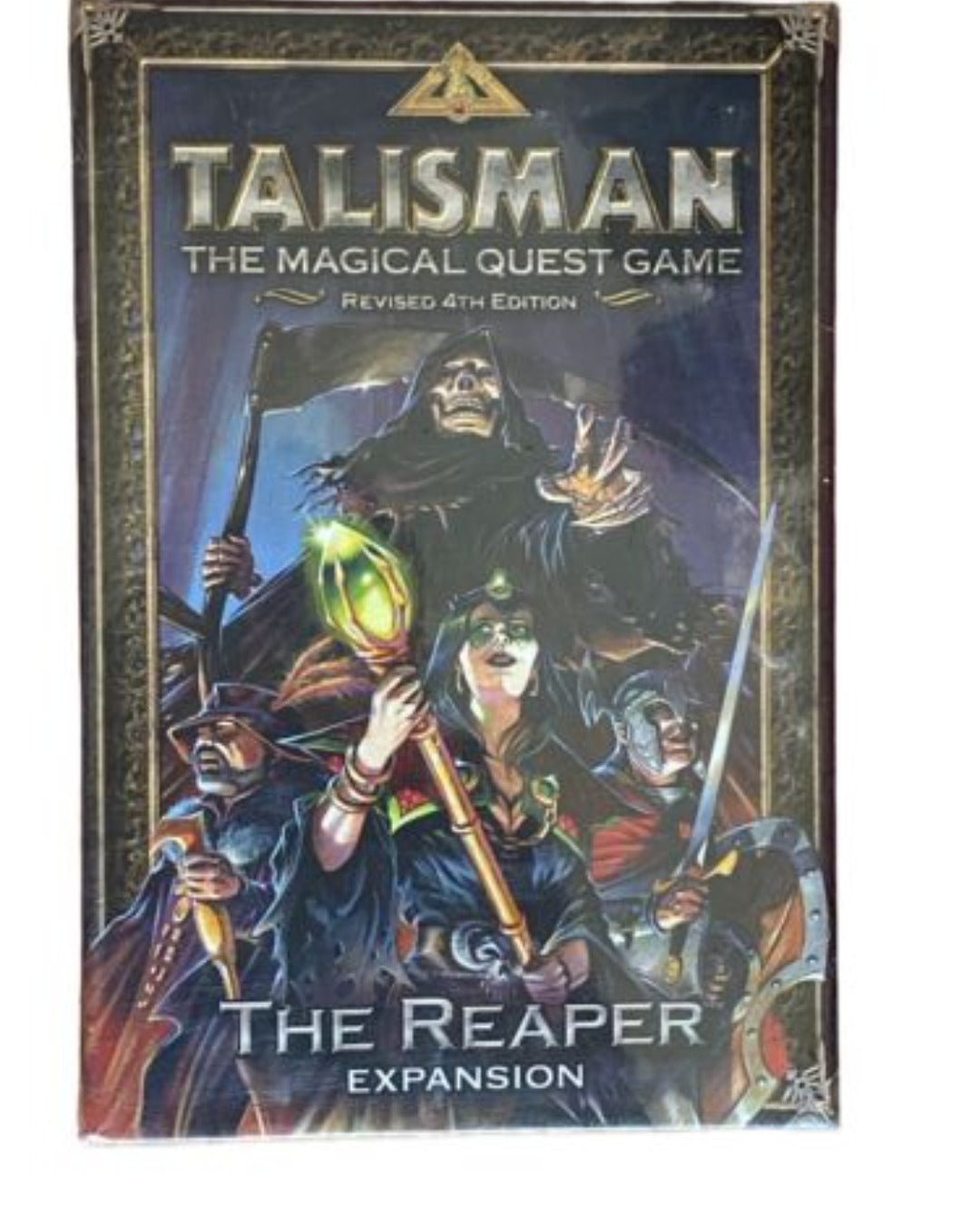 "The Reaper expansion" offers Talisman Revised 4th Edition players 4 new character cards and plastic figures (Dark Cultist, Sage, Knight and Merchant), 90 new Adventure Cards, 26 new Spell Cards, 12 Warlock Quest Cards, and the Grim Reaper, a dark figure that players manipulate against each other.The race to the Crown of Command has never been deadlier!